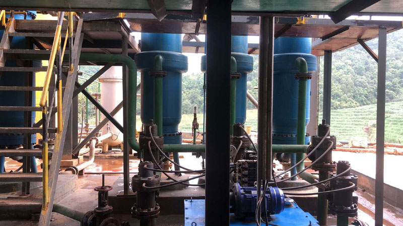 云南永昌鉛鋅礦,隸屬中鋁集團(tuán)。酸性料漿輸送 (pH值為2—3);2018年開(kāi)始運(yùn)行,二臺(tái)一用一備,流量50m3/h,揚(yáng)程4.0Mpa。整個(gè)車(chē)間全套設(shè)備,包括管路閥門(mén),喂料系統(tǒng)全部由我公司提供,我們采用封閉設(shè)計(jì),即從喂料到排出管路整個(gè)系統(tǒng)沒(méi)有開(kāi)口,和料漿接觸表面,一是襯膠,二是采用316 L不銹鋼制作;水隔膜泵采用排漿止回閥上置式,這樣不需排氣,不會(huì)外泄料漿,整個(gè)系統(tǒng)是一個(gè)閉式輸送系統(tǒng),自2018年12月份運(yùn)行以來(lái),運(yùn)行良好,用戶非常滿意。